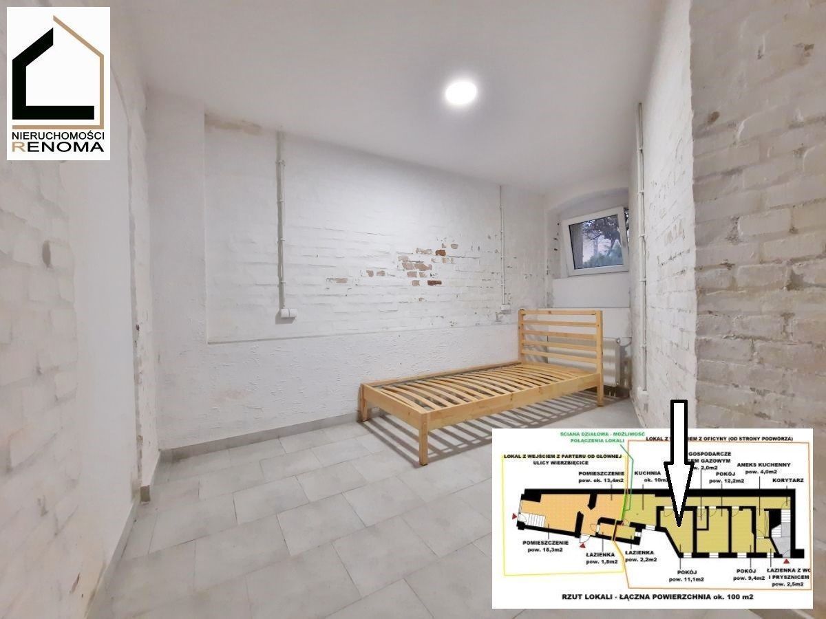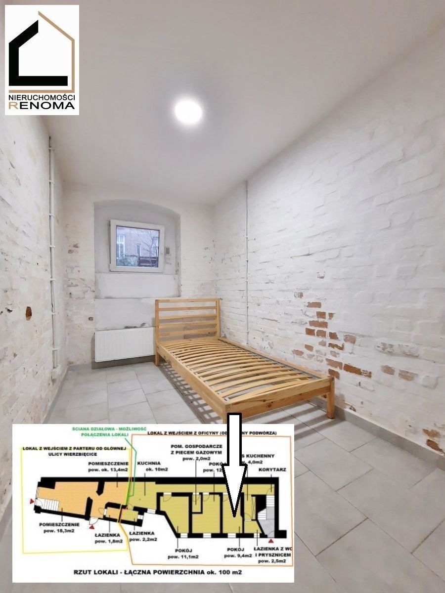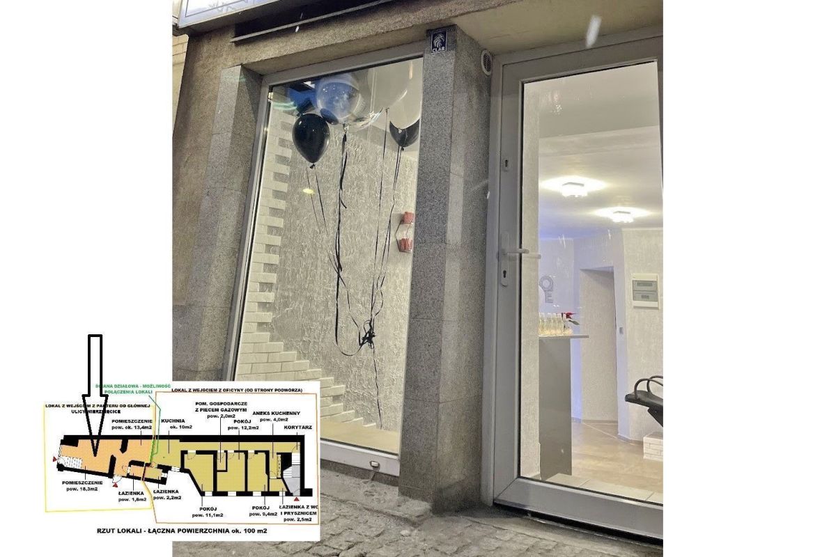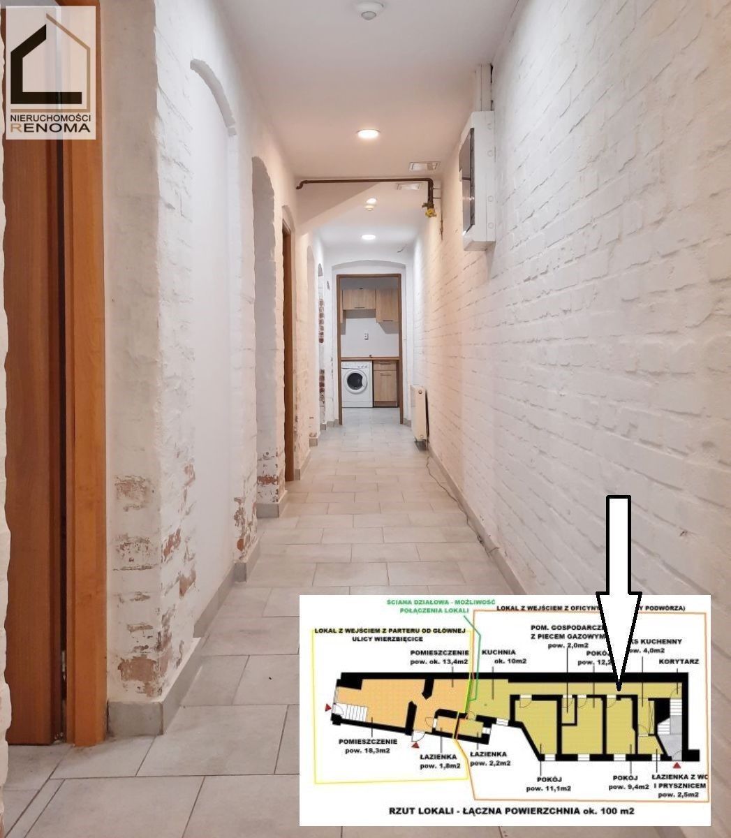 OPIS: Powierzchnia użytkowa lokalu wynosi ok. 100 m2. Lokal znajduje się w przyziemiu kamienicy przy ulicy Wierzbięcice.