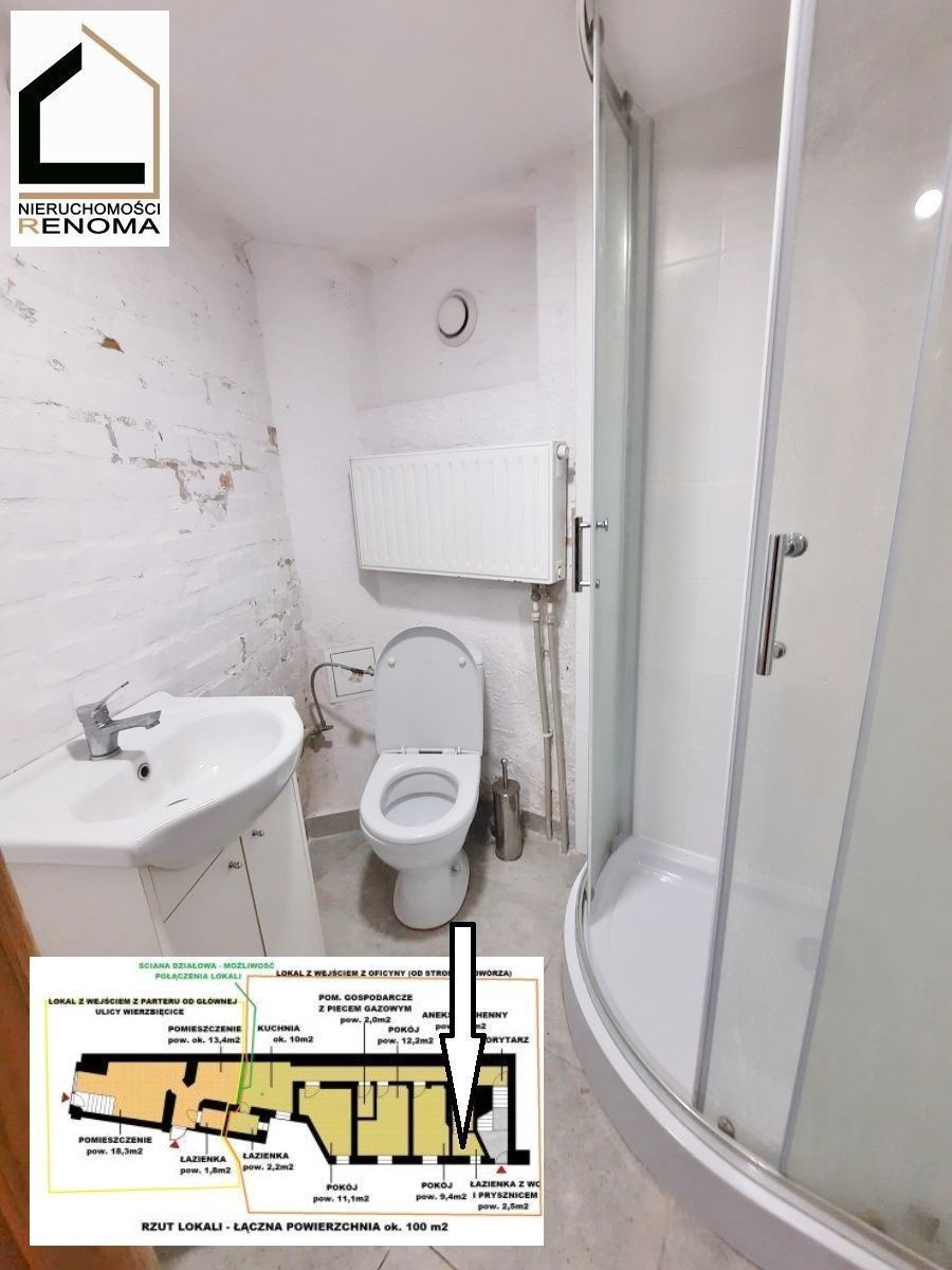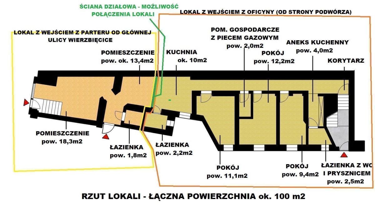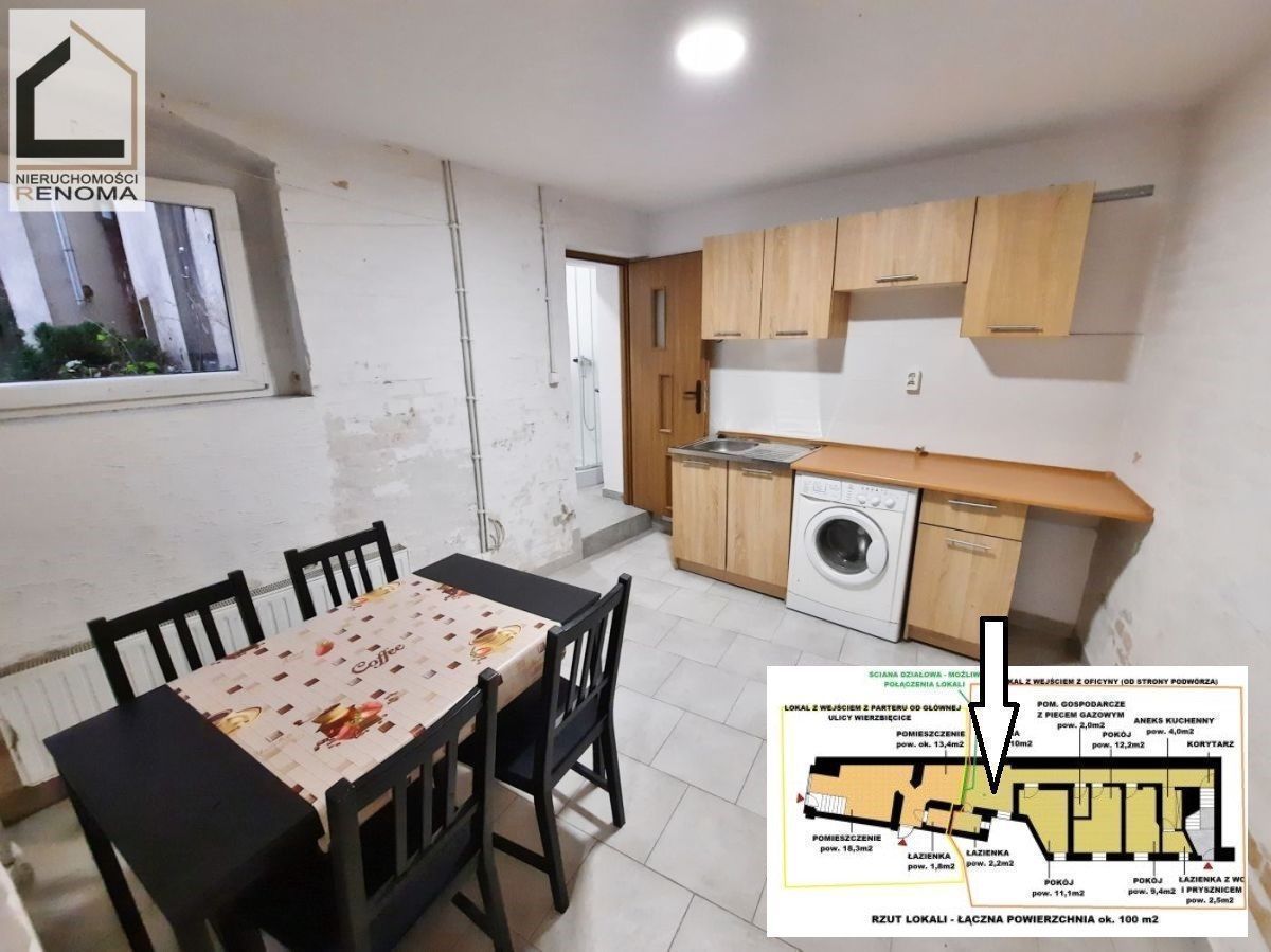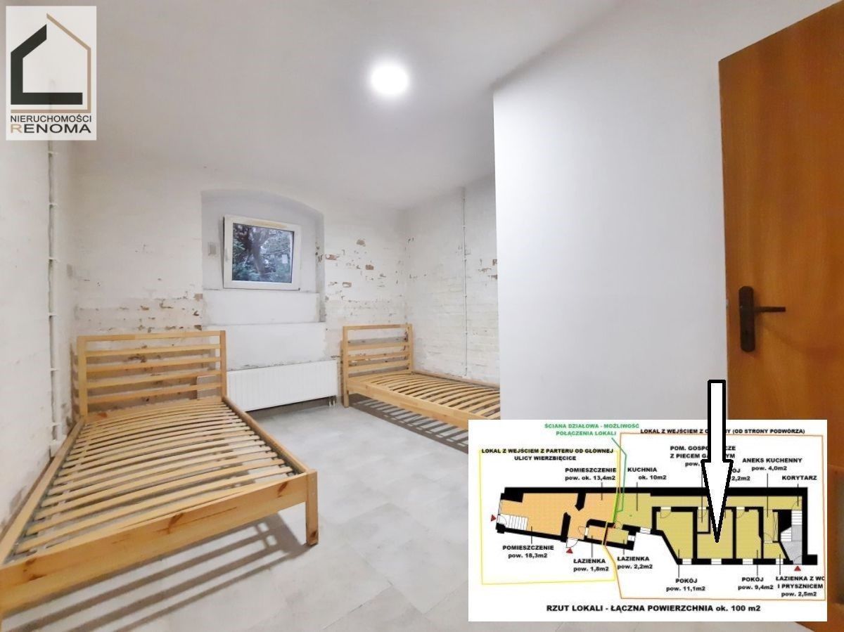 OPIS: Powierzchnia użytkowa lokalu wynosi ok. 100 m2. Lokal znajduje się w przyziemiu kamienicy przy ulicy Wierzbięcice.
