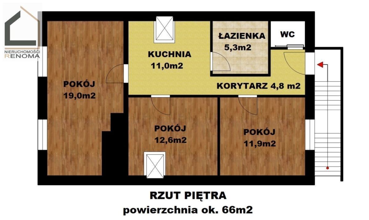 Mieszkanie na piętrze (ok. 66m2):