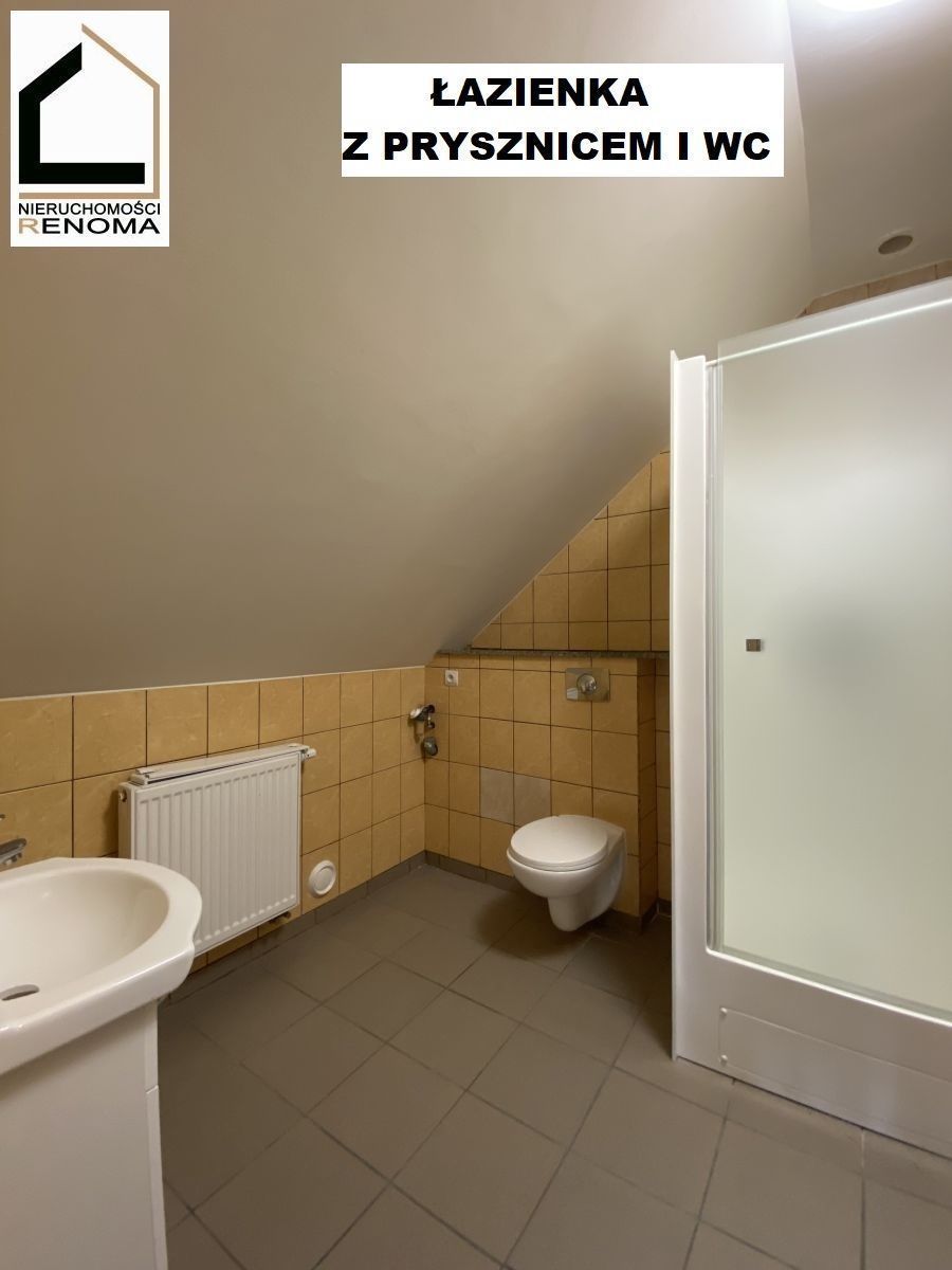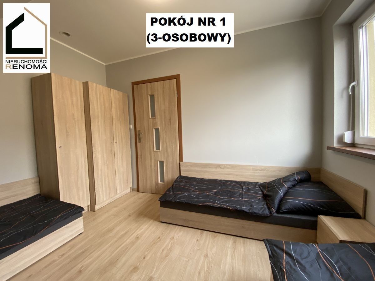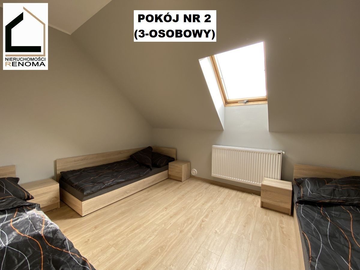 Na piętrze z osobnym bocznym wejściem znajduje się trzypokojowe mieszkanie o powierzchni ok. 66m2. Mieszkanie składa się z trzech pokoi/sypialni, kuchni, łazienki, wc i małego korytarza wejściowego. Mieszkanie na chwilę obecną wynajmowane pod pracowników.